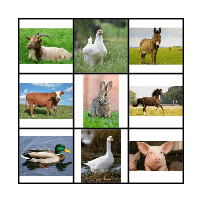 Farm Animals Bingo Card