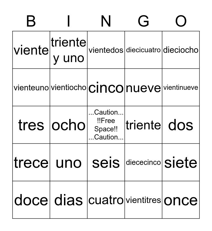 spanish number 1-31 | HHPS/WHMIS Bingo | HHPS/WHMIS Bingo | HHPS/WHMIS Bingo | HHPS/WHMIS Bingo