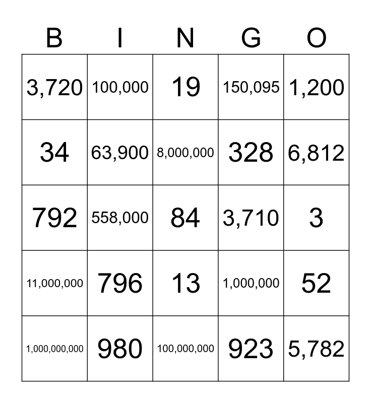 This bingo card has 36 words: Free!, 644,514, 94,460, 63,900, 1,000,000, 11,000,000, 8,000,000, 1,000, 1,200, 11,111, 558,000, 150,095, 7,600, 3,710, 6,812, 3,720, 5,782, 796, 84, 19, 3, 52, 980, 1,000,000,000, 100,000,000, 100,000, 792, 15, 328, 34, 87, 401, 923, 13, 212 and 107.