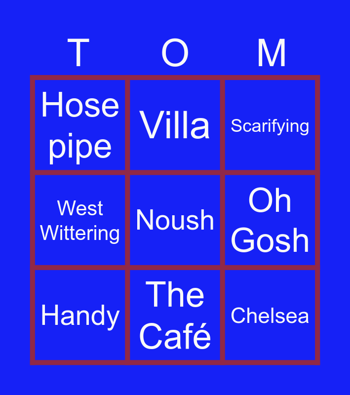 This bingo card has a free space and 20 words: Not Ideal, Awkward Laugh, Scarifying, Grass, Re-seeding, Chelsea, Garden, Hose pipe, Shocking, Villa, Beers x3, Lads x3, Oh Gosh, I don't understand, Handy, Nice!, The Café, West Wittering, Swedish House Mafia and Shocking.