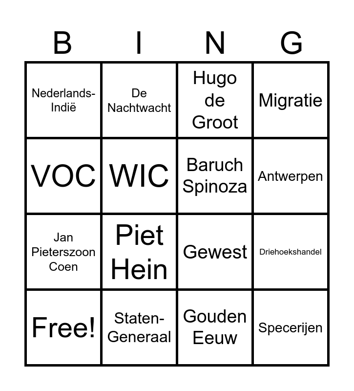 Hoofdstuk 5: De Gouden Eeuw | AOV Bingo | Patricia Paay Bingo | Liedjes bingo | Gouden Eeuw Bingo!