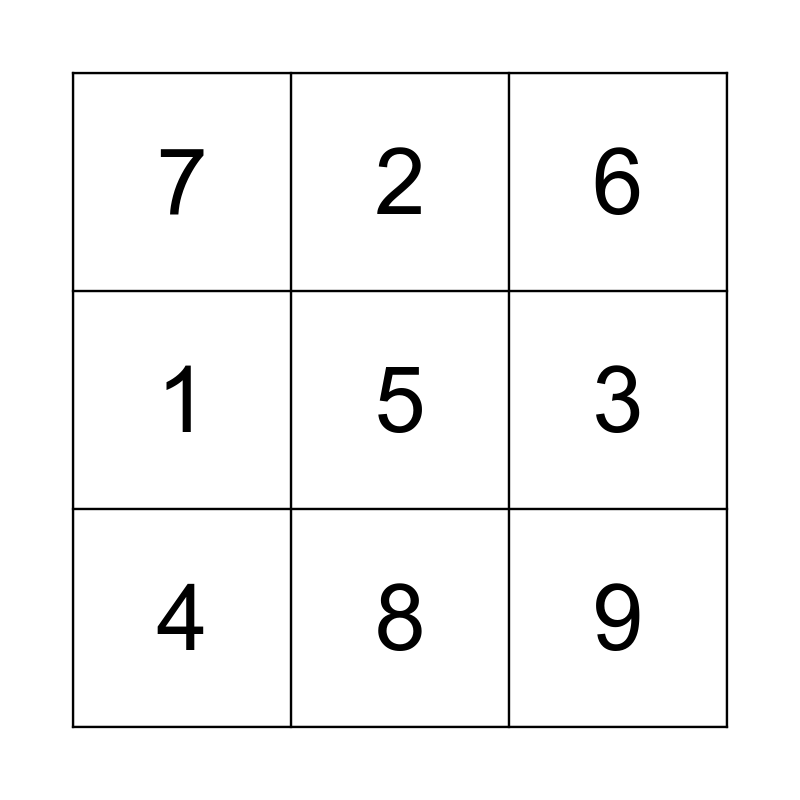 This bingo card has a free space and 8 words: 1, 2, 3, 4, 6, 7, 8 and 9.
