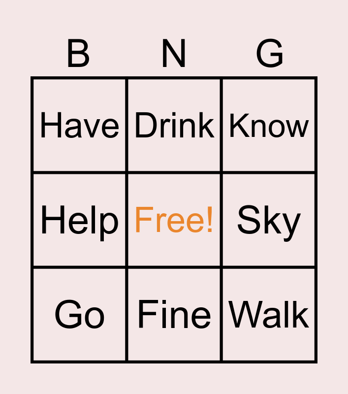 This bingo card has a free space and 44 words: Love, Like, Watch, Write, Study, Eat, Drink, Listen, Go, Make, Know, Read, Buy, Do, Run, Get, See, Sing, Create, Walk, Help, Yellow, Student, Have, Park, Dog, Mom, Music, Book, TV, Water, School, Night, Hi, Five, Pencil, Game, Notebook, Please, Fine, Sky, Blue, Happy and Apple.