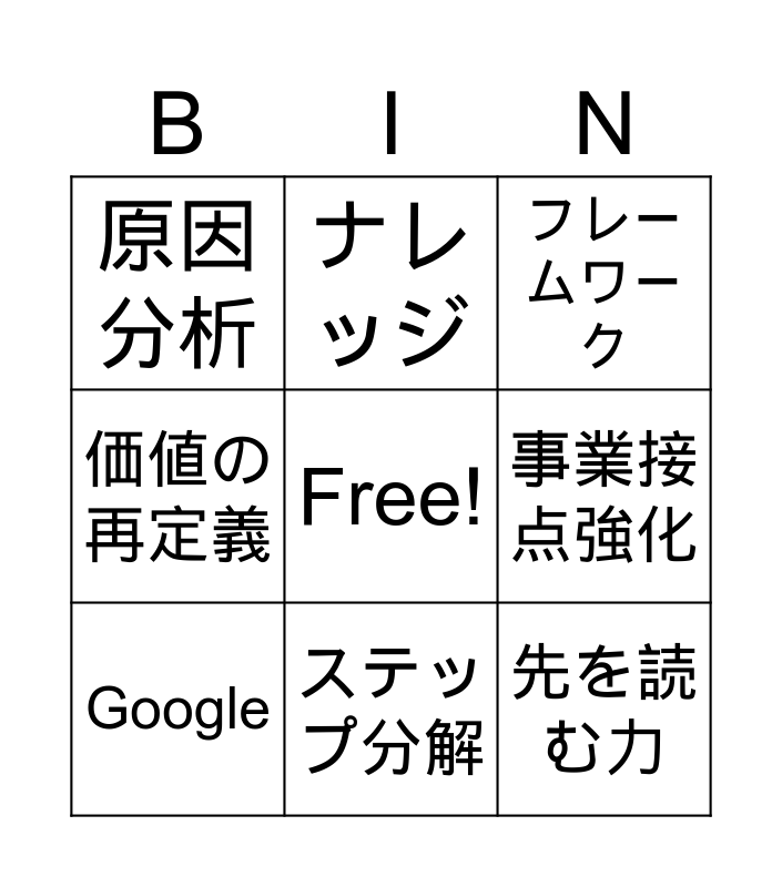 This bingo card has a free space and 21 words: よもやま, CoCoらぼ, ナレッジ, 心理的安全性, 動く前に整える, Google, 原因分析, フレームワーク, ファクト思考, ステップ分解, 変数の整理, 価値の再定義, 未来を描く時間, 直感を信じる, 事業接点強化, ROI, ユーザビリティ, 受け手のリアリティ, 先を読む力, RPA and 主体性.