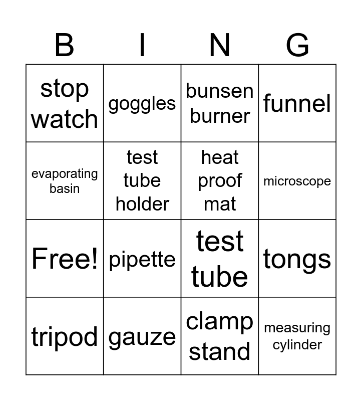 Lab Equipment Bingo | Equipment Bingo | Lab Equipment Bingo (Pictures) | Lab Equipment | Lab and Safety Equipment