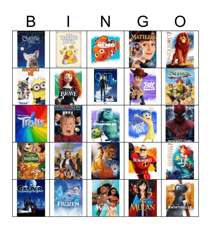 Disney Movies Bingo Card