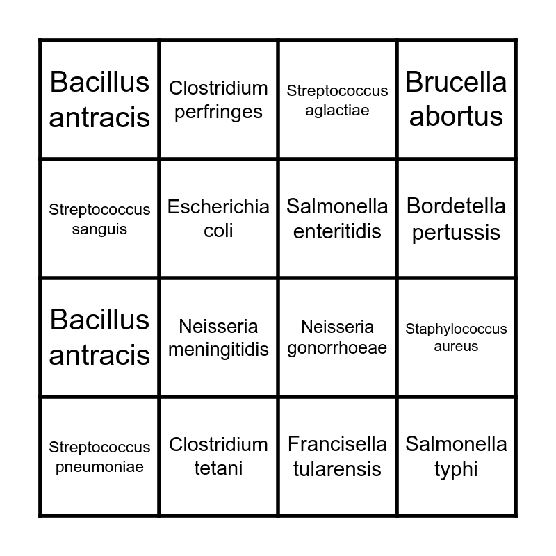 Bacterial Bingo ALL Names | Bacteria Bingo! | Bacterial Bingo! | Systemic and Nervous System Infections | Microbiology