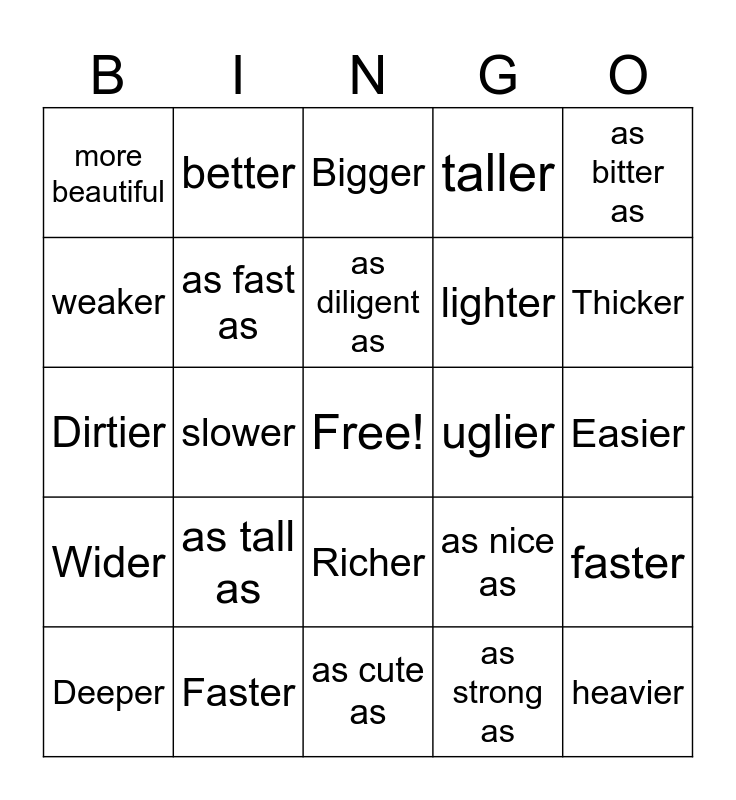 comparative bingo | comparative bingo | comparative bingo | Comparatives | Comparatives