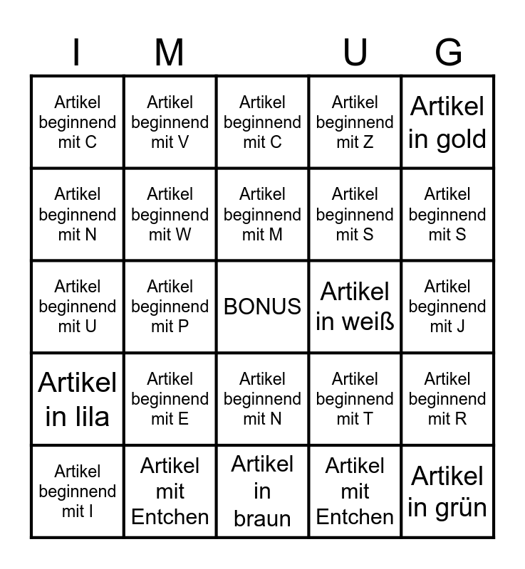 This bingo card has a free space and 74 words: Artikel beginnend mit A, Artikel beginnend mit B, Artikel beginnend mit C, Artikel beginnend mit D, Artikel beginnend mit E, Artikel beginnend mit F, Artikel beginnend mit G, Artikel beginnend mit H, Artikel beginnend mit I, Artikel beginnend mit J, Artikel beginnend mit K, Artikel beginnend mit L, Artikel beginnend mit M, Artikel beginnend mit N, Artikel beginnend mit O, Artikel beginnend mit P, Artikel beginnend mit R, Artikel beginnend mit S, Artikel beginnend mit T, Artikel beginnend mit U, Artikel beginnend mit W, Artikel beginnend mit V, Artikel beginnend mit Z, Artikel in gelb, Artikel in grün, Artikel in rot, Artikel in blau, Artikel in lila, Artikel in pink, Artikel in weiß, Artikel in gold, Artikel in silber, Artikel in schwarz, Artikel in orange, Artikel in braun, Artikel mit Entchen, Artikel mit Q, Artikel in grün, Artikel in rot, Artikel in orange, Artikel in braun, Artikel mit Entchen, Artikel mit Q, Artikel beginnend mit A, Artikel beginnend mit B, Artikel beginnend mit C, Artikel beginnend mit D, Artikel beginnend mit E, Artikel beginnend mit F, Artikel beginnend mit G, Artikel beginnend mit H, Artikel beginnend mit I, Artikel beginnend mit J, Artikel beginnend mit K, Artikel beginnend mit L, Artikel beginnend mit M, Artikel beginnend mit N, Artikel beginnend mit O, Artikel beginnend mit P, Artikel beginnend mit R, Artikel beginnend mit S, Artikel in blau, Artikel in lila, Artikel in pink, Artikel in weiß, Artikel in gold, Artikel in silber, Artikel in schwarz, Artikel beginnend mit T, Artikel beginnend mit U, Artikel beginnend mit W, Artikel beginnend mit V, Artikel beginnend mit Z and Artikel in gelb.