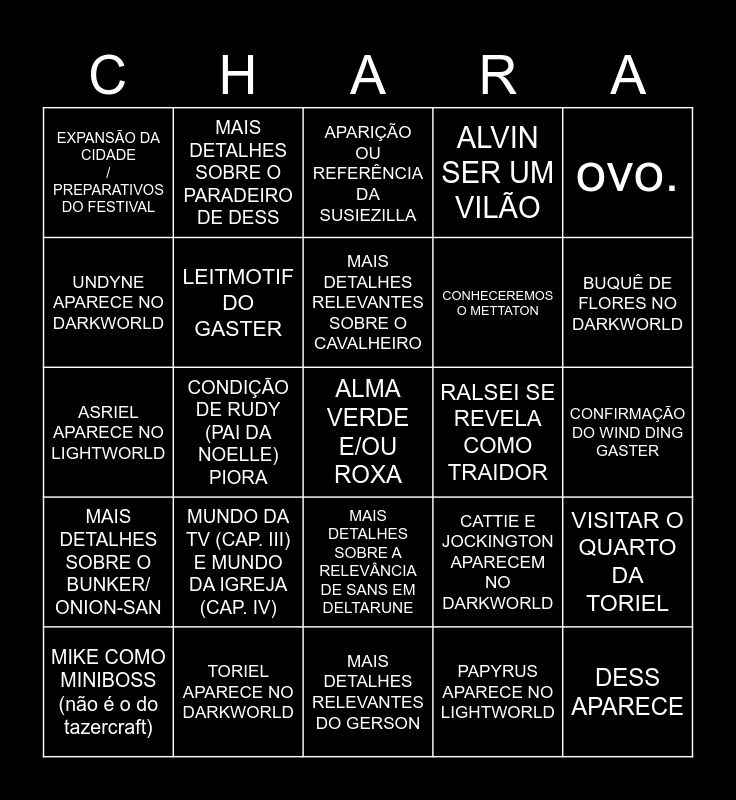 Bingo do capítulo 3 | CAPÍTULOS NOVOS DELTARUNE | DELTARUNE CHAPTERS 3&4 | Deltarune Teorias Chapter 3 e 4 | Bingo de Deltarune capítulo 3 e 4