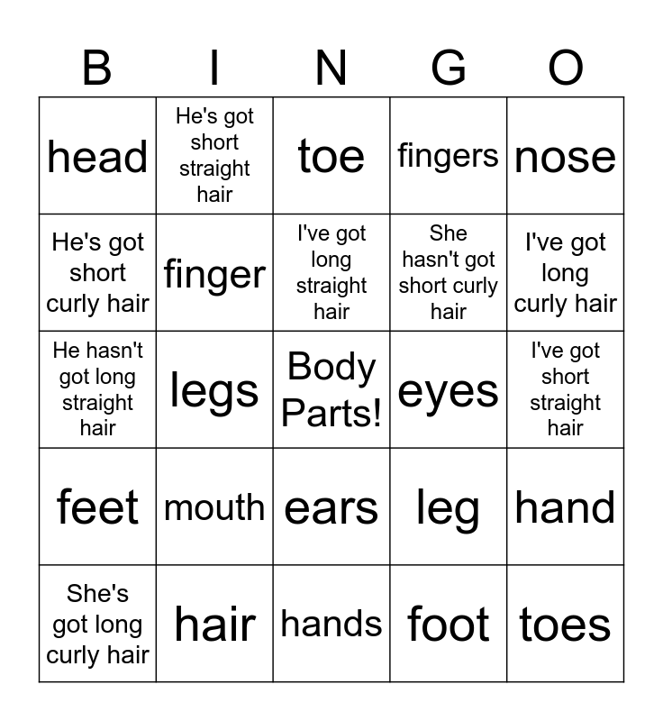 Body Parts Bingo | Body Parts Bingo | Hair | 2 klasa, 4 unit | Appearance (EU4 U3L1)