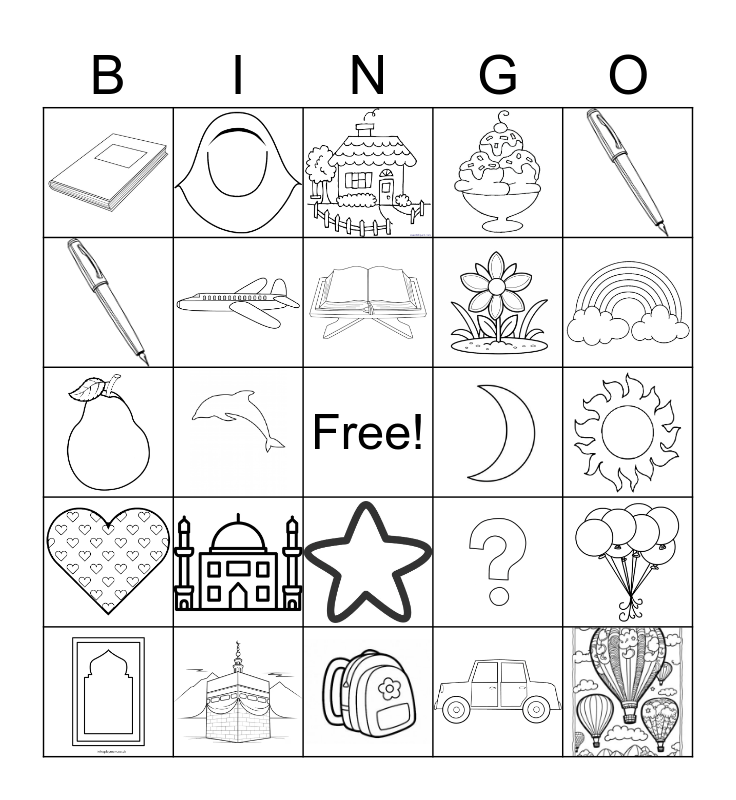 This bingo card has 24 images and a free space.