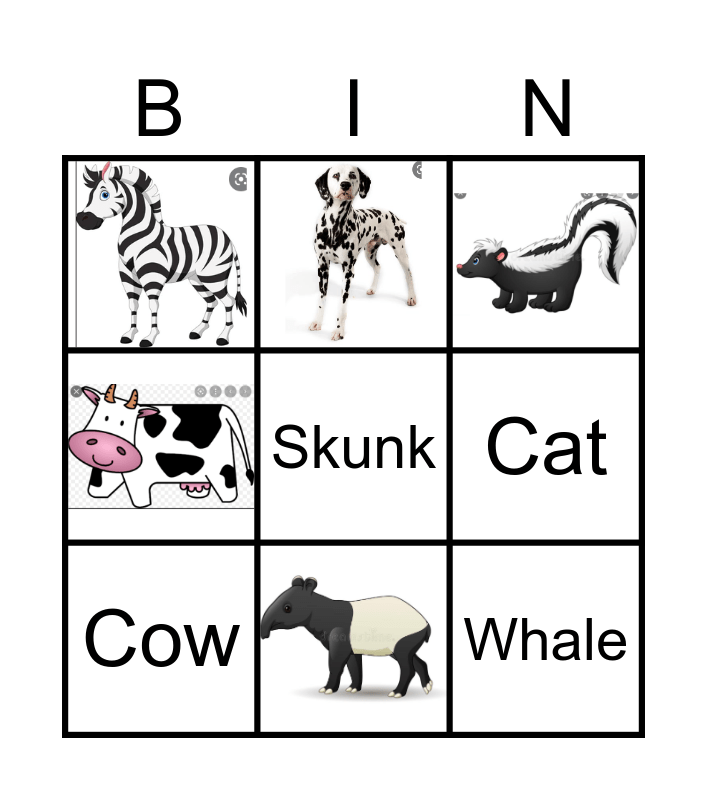 BLACK AND WHITE ANIMAL | BLACK AND WHITE ANIMAL | Animal Bingo | ANIMAL BINGO | Wild One Bingo