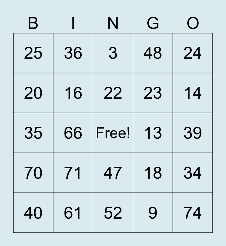 This bingo card has a free space and 75 words: 1, 2, 3, 4, 5, 6, 7, 8, 9, 10, 11, 12, 13, 14, 15, 16, 17, 18, 19, 20, 21, 22, 23, 24, 25, 26, 27, 28, 29, 30, 31, 32, 33, 34, 35, 36, 37, 38, 39, 40, 41, 42, 43, 44, 45, 46, 47, 48, 49, 50, 51, 52, 53, 54, 55, 56, 57, 58, 59, 60, 61, 62, 63, 64, 65, 66, 67, 68, 69, 70, 71, 72, 73, 74 and 75.