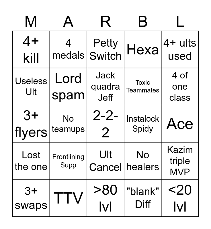 Marbibl | Marvel Rivals V1 | Midarda Bingo | pyke jungle bingo | Paladins Support Bingo