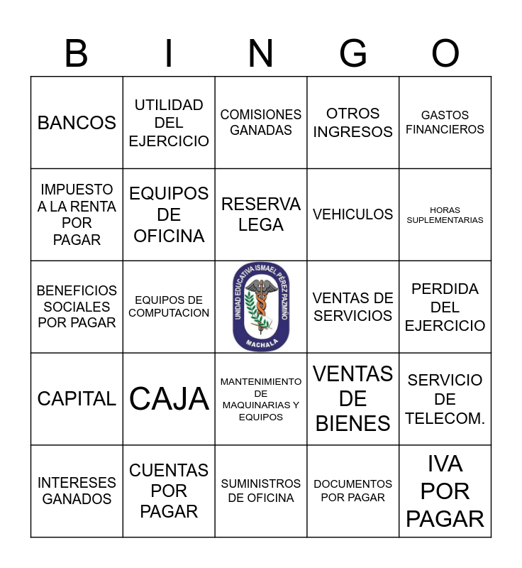 BINGO CONTABLE | CUENTAS | CUENTAS | Elementos contables | CUENTAS