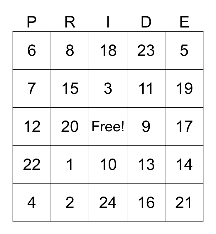 PRIDE Bingo Card