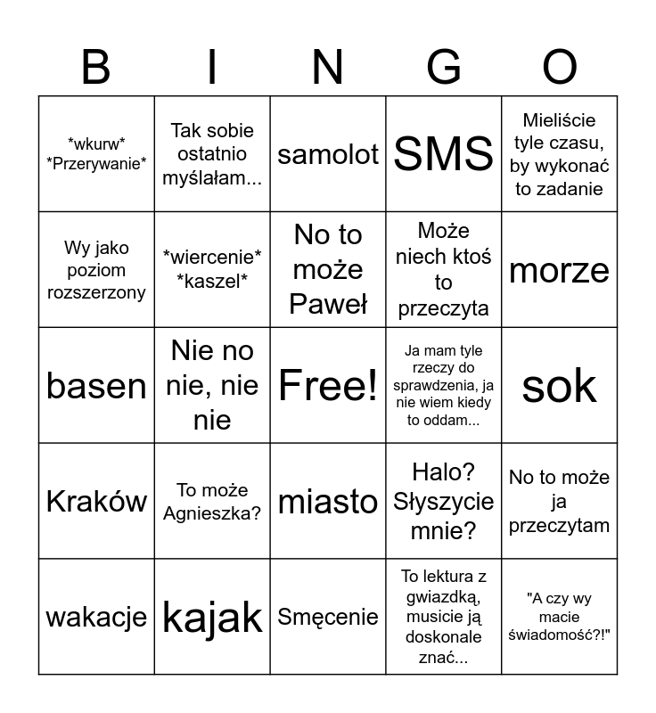 Język Polski Bingo | Język Polski Bingo | Bingo agendy | teksty lo | Kuba bingo