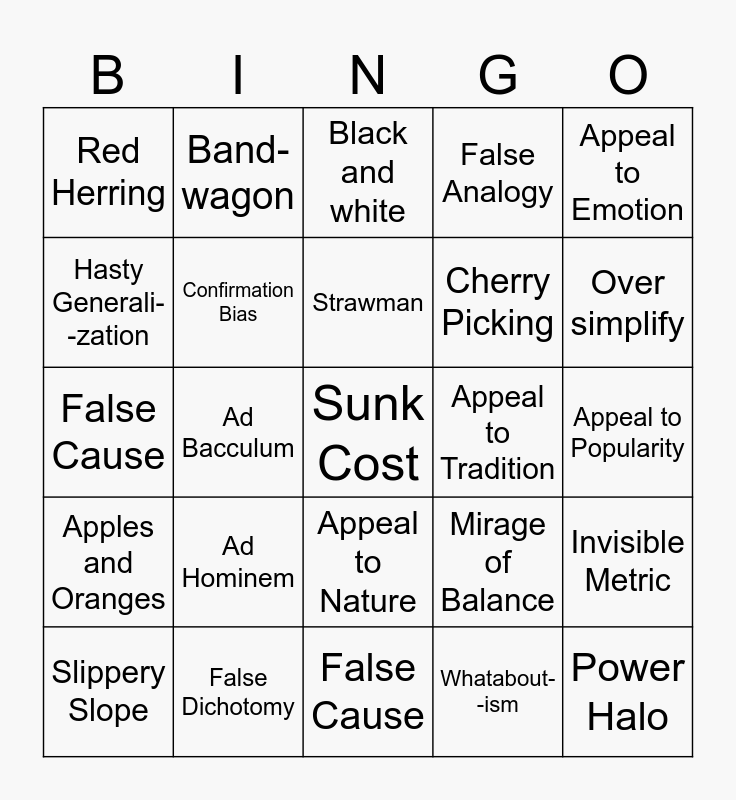 FALLACY BINGO | Fallacy Bingo | Fallacy Bingo | LOGICAL FALLACY | Informal fallacy Bingo!!