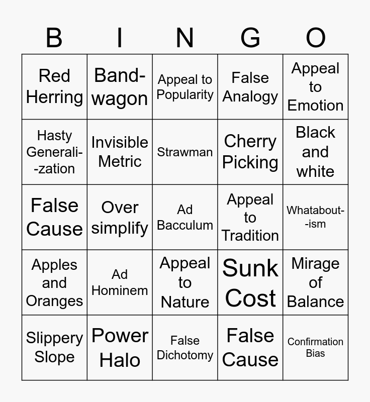 FALLACY BINGO | Fallacy Bingo | Fallacy Bingo | LOGICAL FALLACY | Informal fallacy Bingo!!