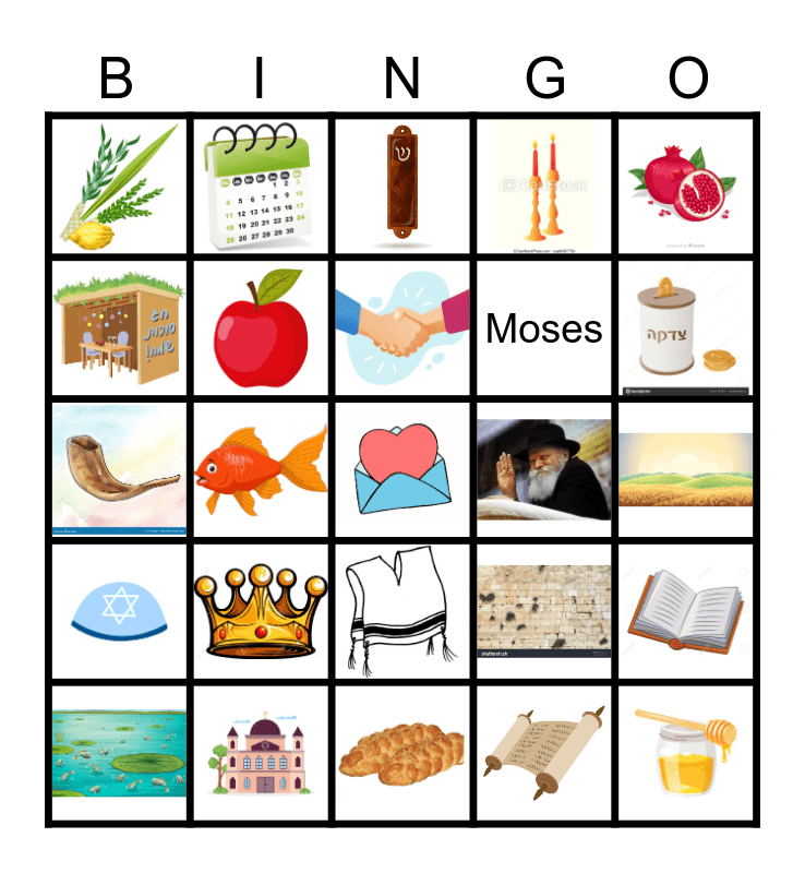 This bingo card has 24 images and 1 words: Moses.