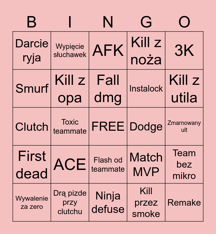 Valorantowe bingo | CSGO bingo xdmaciuś69 ahhh | OW BINGO | Cod bingo (pl) | Valorant Bingo