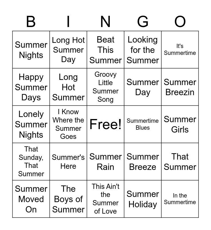 Songs of Summer | SUMMER ROCK-N-ROLL BINGO | SUMMER ROCK-N-ROLL BINGO | SUMMER ROCK-N-ROLL BINGO | SUMMER ROCK-N-ROLL BINGO
