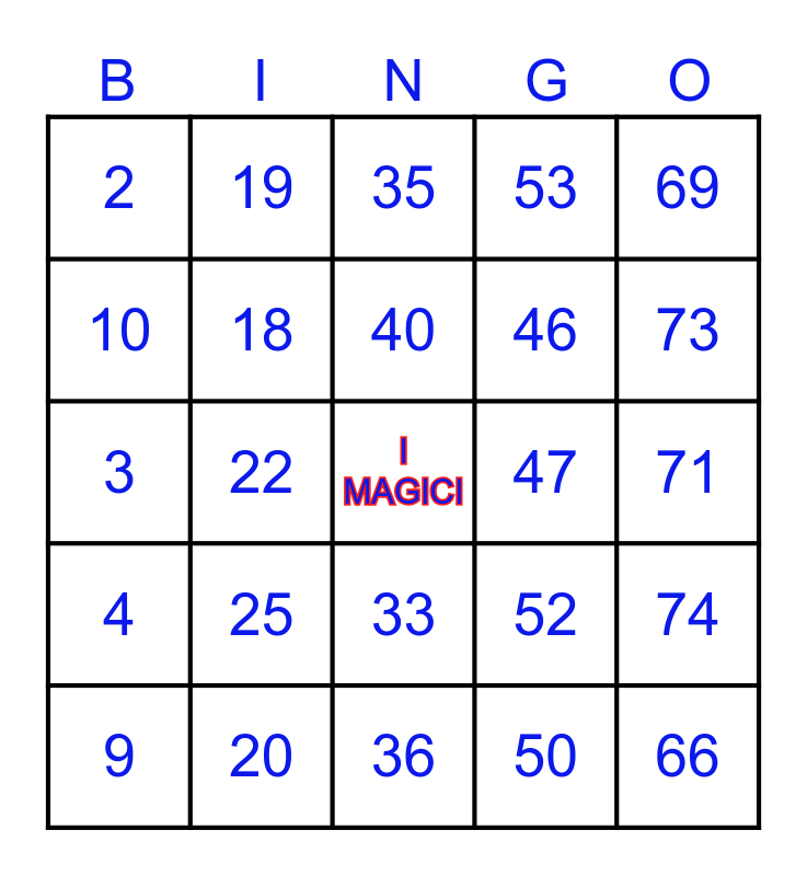This bingo card has a free space and 35 words: 1, 16, 30, 46, 66, 2, 18, 31, 47, 67, 3, 19, 33, 49, 69, 4, 20, 35, 50, 71, 9, 22, 36, 51, 73, 10, 23, 37, 52, 74, 11, 25, 40, 53 and 75.