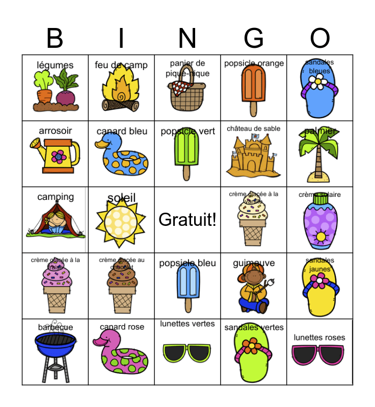 BINGO - La plage | Bonne fête Sandrine! | Les vêtements | le déjeuner | Les Vetements