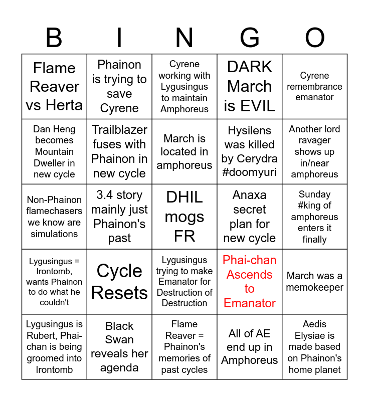 3.4 PHAI CHAN BINGO | 3.4 PHAI CHAN BINGO | 3.4 PHAI CHAN BINGO | Amphoreus prediction (pre 3.2) | HSR 3.4 story