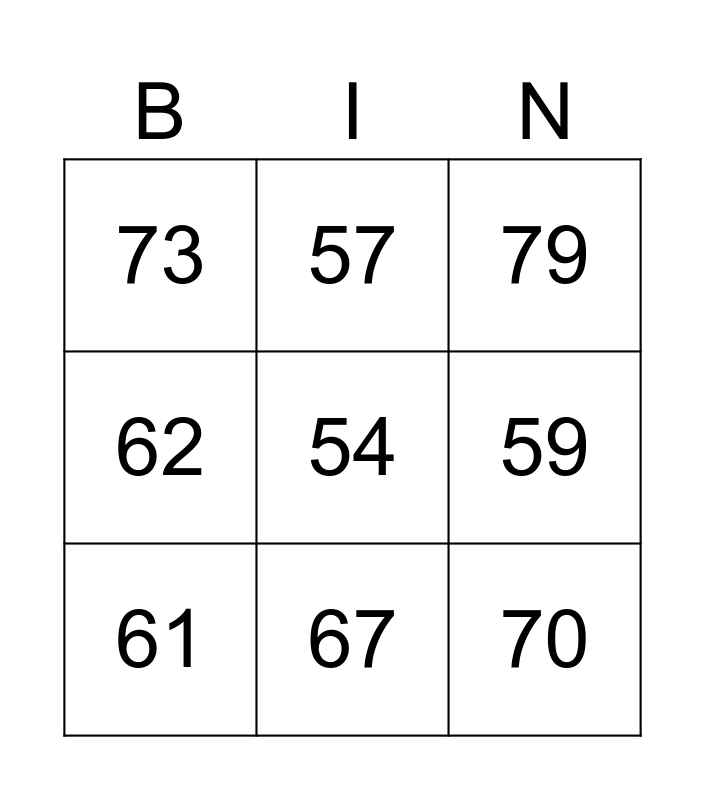 This bingo card has a free space and 50 words: 50, 51, 52, 53, 55, 56, 57, 58, 59, 60, 61, 62, 63, 64, 65, 66, 67, 68, 69, 70, 71, 72, 73, 74, 75, 76, 77, 78, 79, 80, 81, 82, 83, 84, 85, 86, 87, 88, 89, 90, 91, 92, 93, 94, 95, 96, 97, 98, 99 and 100.