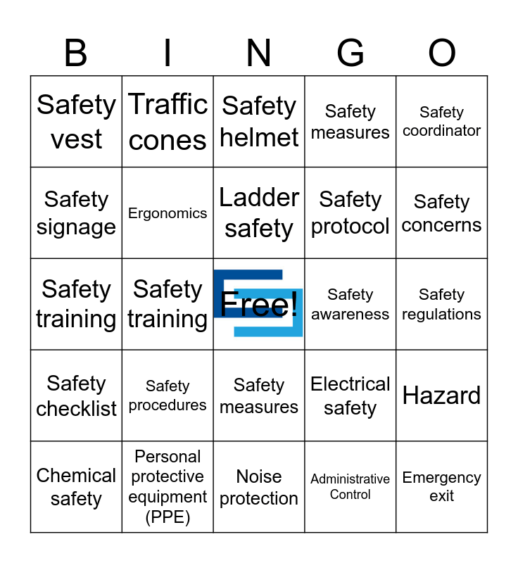 This bingo card has a free space and 114 words: RISK, RAM, Corrective Action, Safety glasses, Reflective vest, Fall protection, Traffic cones, Barricades, Hierarchy of Hazard Control, Emergency exit, Hazardous materials, Job Scope, Safety training, Confined space, Lockout/tagout, Emergency evacuation, Fire extinguisher, Safety boots, Warning signs, High visibility apparel, Safety gloves, Ladder safety, Guardrails, Safety barriers, Safety goggles, Personal protective equipment (PPE), Safety procedures, Risk assessment, Safety inspection, Safety culture, Ergonomics, Noise protection, Electrical safety, Safety signage, Chemical safety, Slip-resistant shoes, Safety precautions, Safety standards, Safety regulations, Safety committee, Safety audit, Safety coordinator, Safety equipment, Emergency response, Safety checklist, Safety monitor, Safety plan, Safety protocol, Safety record, Safety violation, Safety precautions, Safety measures, Safety gear, Safety goggles, Safety helmet, Safety procedures, Safety officer, Safety protocols, Safety regulations, Safety training, Safety manual, Safety guidelines, Safety vest, Safety shoes, Safety inspection, Safety briefing, Safety meeting, Safety awareness, Safety concerns, Safety culture, Safety procedures, Safety precautions, Safety equipment, Safety standards, Safety guidelines, Safety training, Safety protocols, Safety measures, Safety precautions, Safety gear, Safety goggles, Safety helmet, Safety officer, Safety regulations, Safety vest, Safety shoes, Safety inspection, Safety meeting, Safety manual, Safety plan, Safety protocol, Safety record, Safety violation, Safety coordinator, Safety committee, Safety culture, Safety briefing, Safety monitor, Safety audit, Safety signage, GHS, Job Scope, Chemical Control, Hazard, JHA, ALARP, Engineering Control, Administrative Control, Material Handling, Ergonomics, Machine Guard, Electric Shock, Energy Isolation and SDS (Safety Data Sheet).