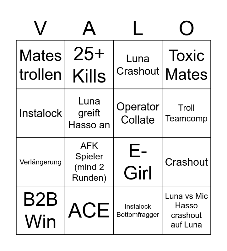Valorant | Valorant Bingo Deutsch | Valorant Bingo Deutsch | Valorant Bingo | ValoBingo