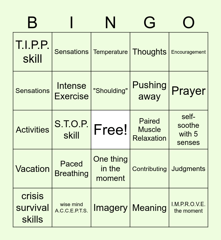 DISTRESS TOLERANCE | DBT Mindfulness Skills Bingo! | Distress Tolerance Skills | Distress Tolerance Skills | Distress Tolerance Skills