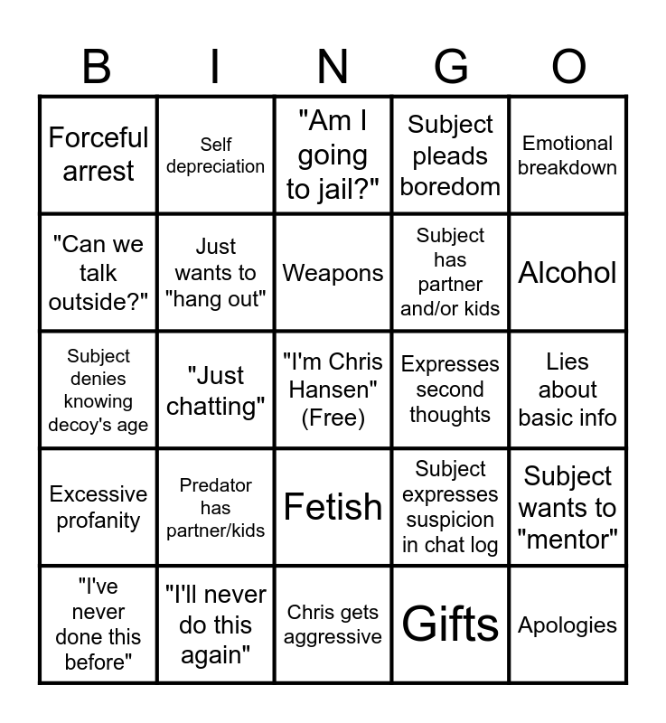 To Catch a Predator Bingo | To Catch a Predator Bingo | To Catch a Predator Bingo | To Catch a Predator Bingo | To Catch a Predator Bingo