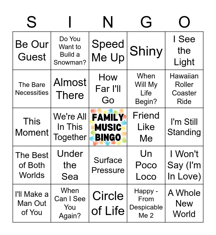 Family Music Bingo | Disney Song Bingo | Animated Movie Songs | What's That Song? | 🎶 Guess the Song 🎵