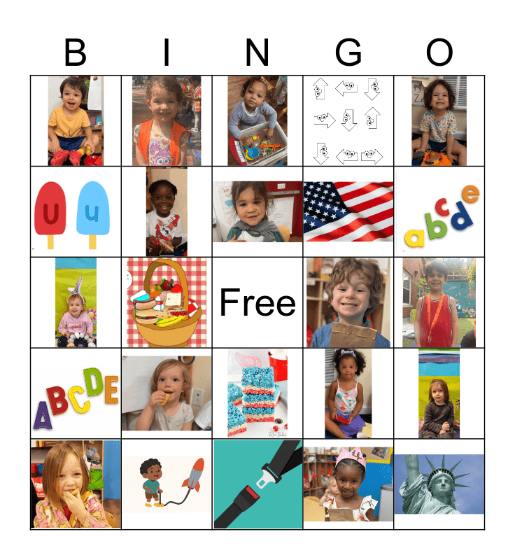 This bingo card has 24 images and a free space.