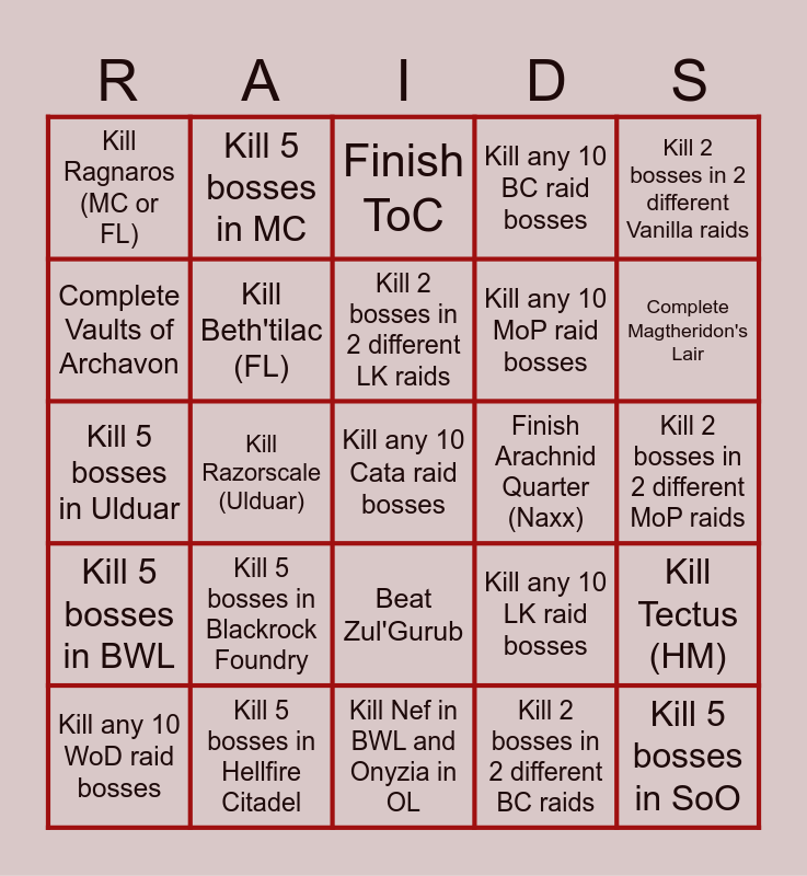 WoW Old Raids Bingo | WoW Old Raids Bingo | WoW Old Raids Bingo | Borderlands 2 challenges | elden ring randomizer