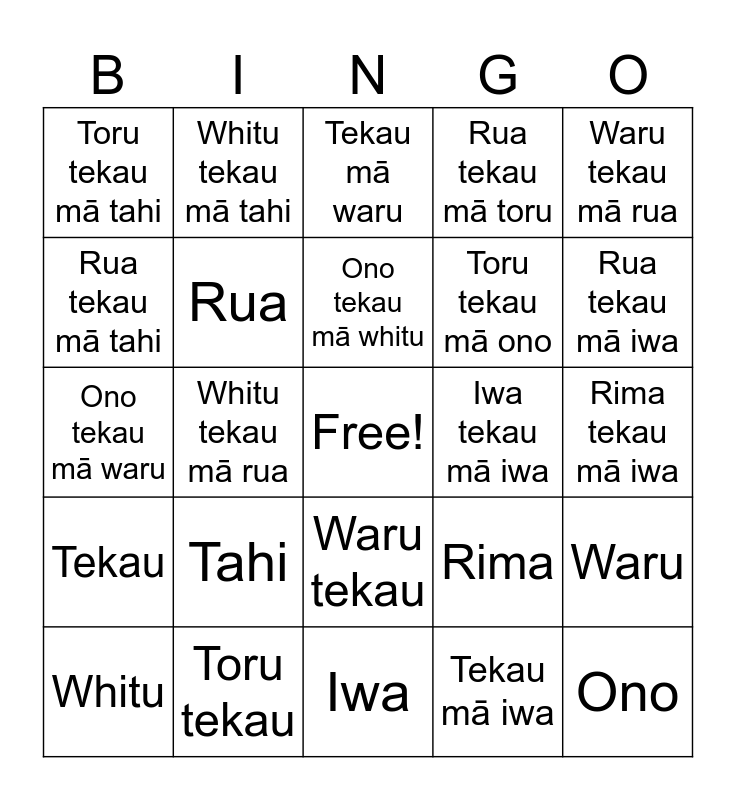 MILA'S BINGO! | Whare Whare - Ngā Tau | Whare Whare Bingo | whare whare | Numbers te reo KW