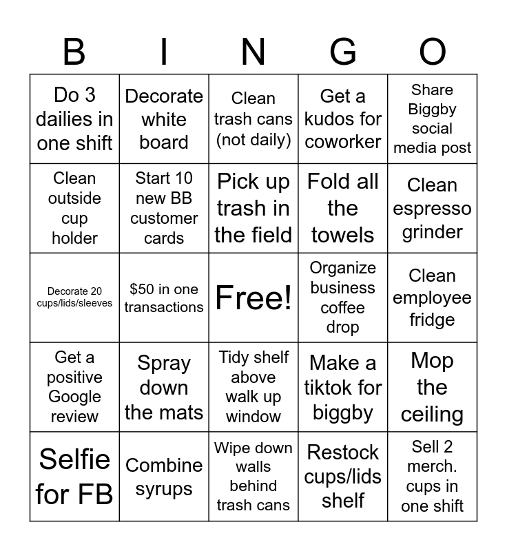 Biggby Bingo 2025 | Back Barista BINGO | Front Barista Bingo | Cashier | barista back