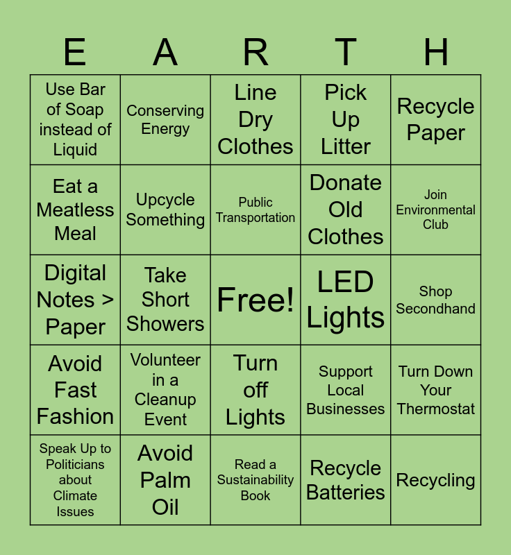Earth Day Bingo | sustainability | Because We Should Save the Earth. | SEnLI's bingo | Sustainability
