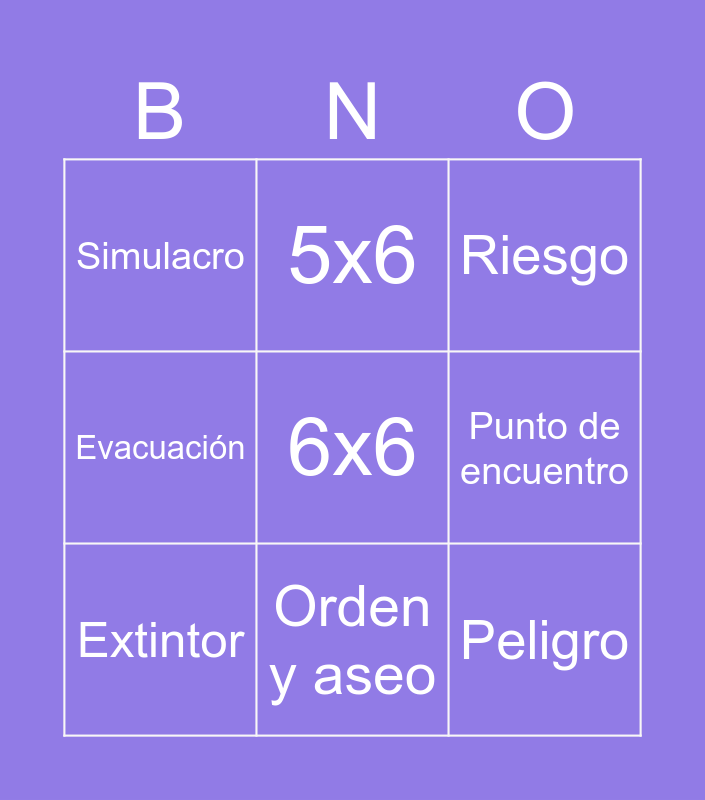 This bingo card has a free space and 42 words: 3x4, 5x6, 2x9, 4x4, 8x4, 7x2, 3x0, 9x3, Evacuación, Salud, Punto de encuentro, Biomecánico, Orden y aseo, Peligro, Accidentes, Pausas activas, Ergonomía, Brigadistas, Copasst, Riesgo, Extintor, botiquín, Inspecciones, Simulacro, Iluminación, Postura, Comité, Investigación, Incidente, Reciclar, Reutilizar, Reducir, Agua, Energía, Controles, Condición de salud, Autocuidado, Reporte, Condición insegura, Políticas, Punto de encuentro and Evaluaciones medicas.