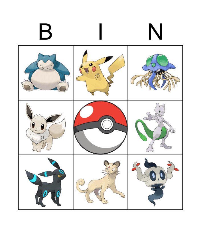 Pokemon Friends Bingo Card
