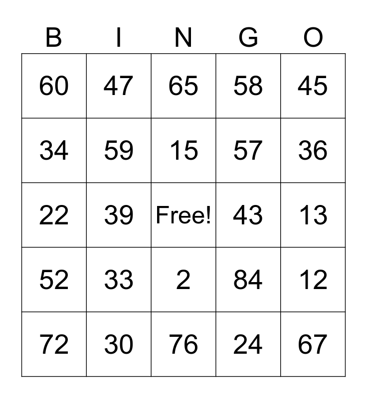 This bingo card has a free space and 86 words: 1, 2, 3, 4, 5, 6, 7, 8, 9, 10, 11, 12, 13, 14, 15, 16, 17, 18, 19, 20, 21, 22, 23, 24, 25, 26, 27, 28, 29, 30, 31, 32, 33, 34, 35, 36, 37, 38, 39, 40, 41, 42, 43, 44, 45, 46, 47, 48, 49, 50, 51, 52, 53, 54, 55, 56, 57, 58, 59, 60, 61, 62, 63, 64,, 1, 2, 3, 4, 5, 6, 7, 8, 9, 10, 11, 12, 13, 14, 15, 16, 17, 18, 19, 20, 21, 22, 23, 24, 25, 26, 27, 28, 29, 30, 31, 32, 33, 34, 35, 36, 37, 38, 39, 40, 41, 42, 43, 44, 45, 46, 47, 48, 49, 50, 51, 52, 53, 54, 55, 56, 57, 58, 59, 60, 61, 62, 63, 64, 65, 66, 67, 68, 69, 70, 71, 72, 73, 74, 75, 76, 77, 78, 79, 80, 81, 82, 83, 84 and 85.