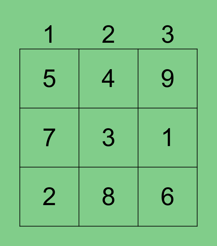 This bingo card has a free space and 8 words: 1, 9, 4, 2, 5, 6, 7 and 8.