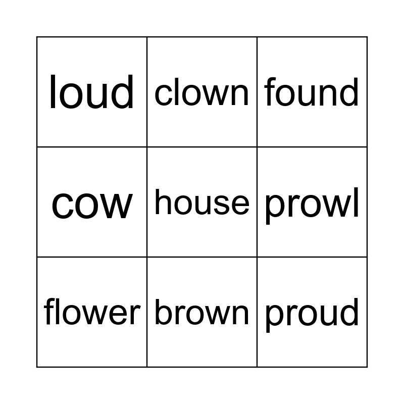 ou or ow words Bingo Card