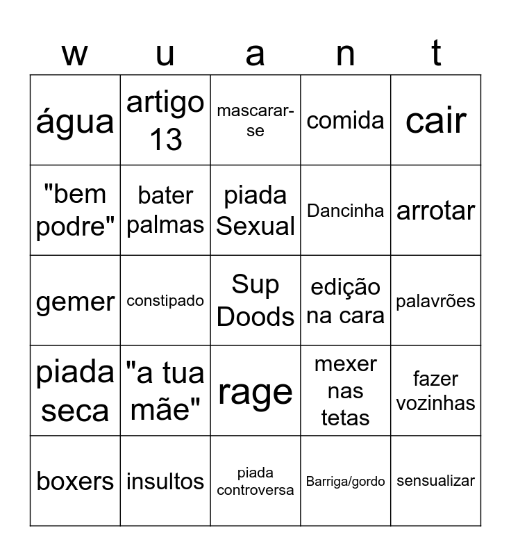 WUANT BINGO | WANT BINGO | wuant | wuant | wuant