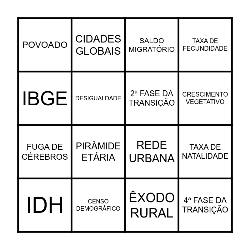 BINGO DEMOGRÁFICO | BINGO DEMOGRÁFICO | Bingo Demográfico | BINGO TAXAS POPULACIONAIS | TAXAS POPULACIONAIS