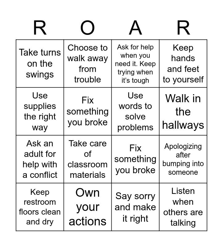ROAR | Back from Break Bingo | Safe Responsible Respectful | PBIS Bingo 2018 | How to act in at school