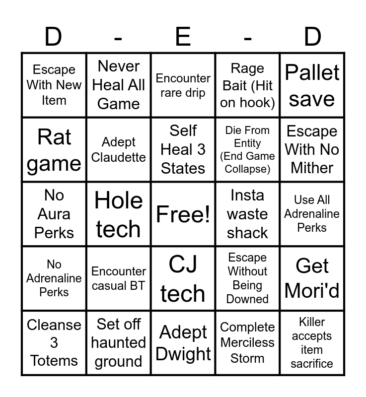 DBD Bingo | DBD Bingo | DBD Bingo | DbD Survivor BINGO | DbD Survivor BINGO